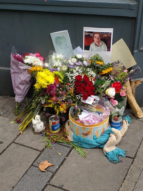 Many of us had got to know Tracey O’Brien, who sat outside the vet’s premises on the corner of Lower Clapton Road and Clapton Passage. She was homeless, had been dealing with a lot of issues for many years, had a massive heart and was known by many (it seems like many, many!). Sadly she died in August and we were letting the community know.